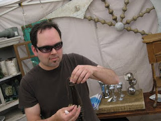 Chris is making last minute repairs to an English floor lamp, it was one of the first items to sell.